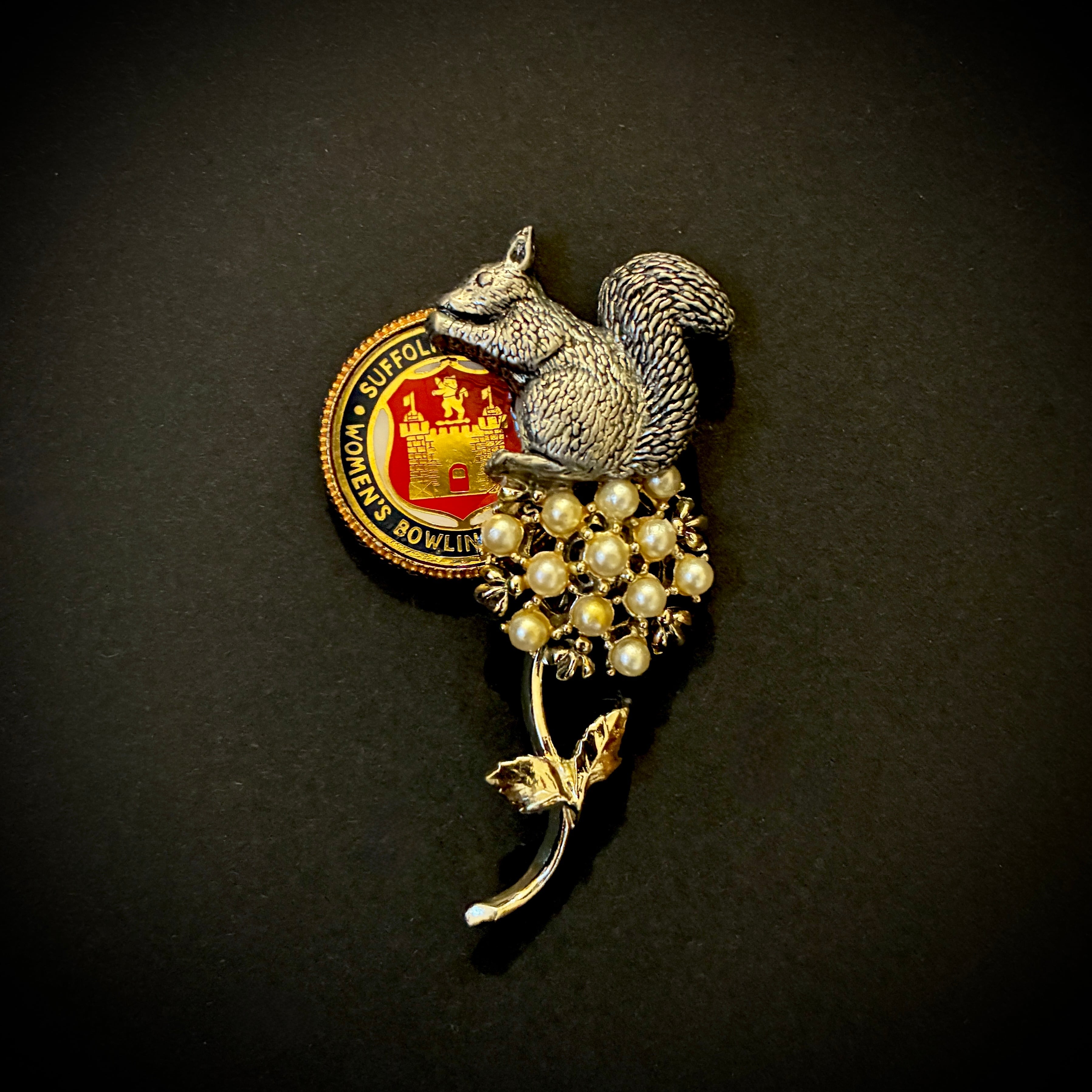 リスと花のブローチ