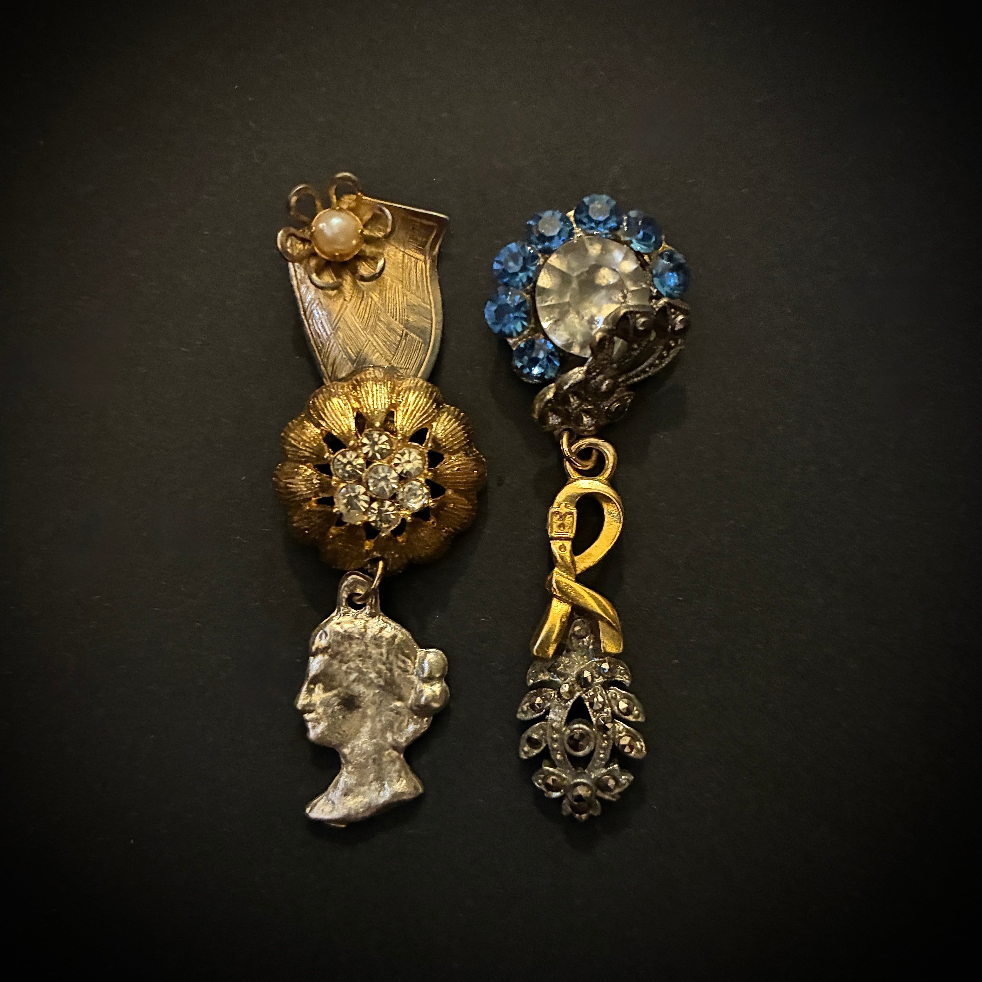 ・アンティーク、またはヴィンテージのパーツを使用しているため経年変化による変色、キズ、ビジューやビーズなどの抜け落ちは古いものならではの味として楽しんでいただけますと幸いです。